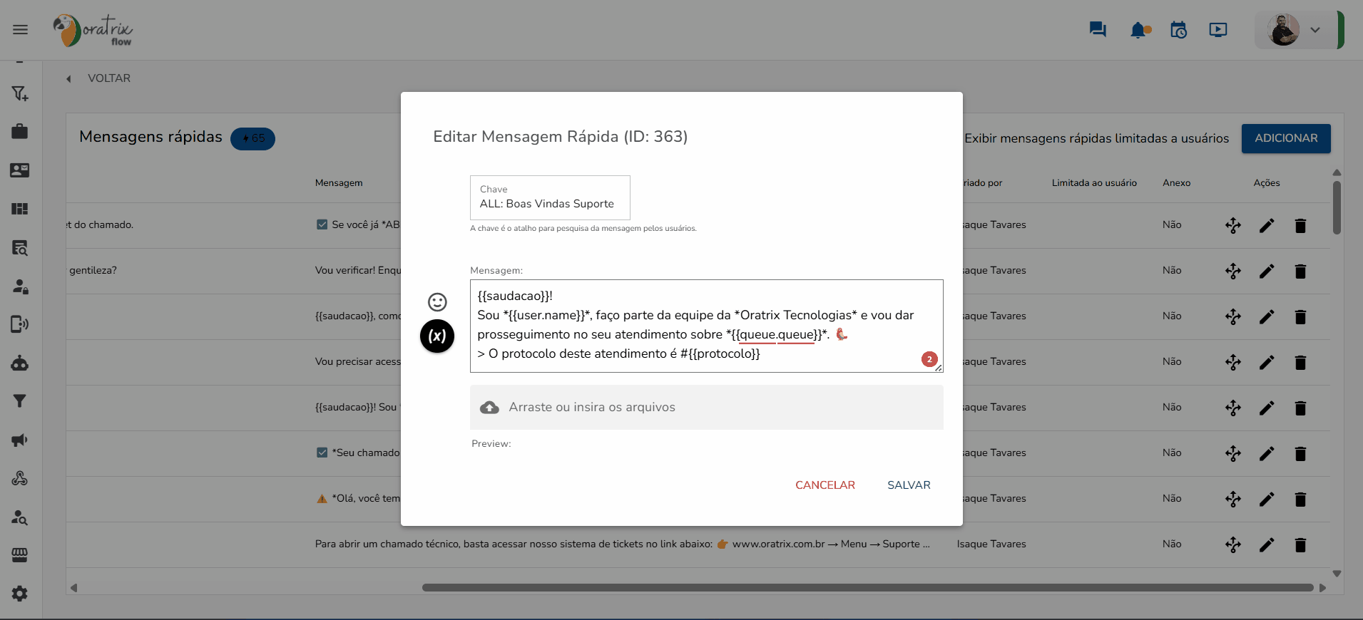 Com o uso correto das variáveis, empresas conseguem criar interações mais inteligentes, garantindo precisão de dados, automação consistente e maior eficiência na comunicação com o cliente dentro do ecossistema Oratrix.