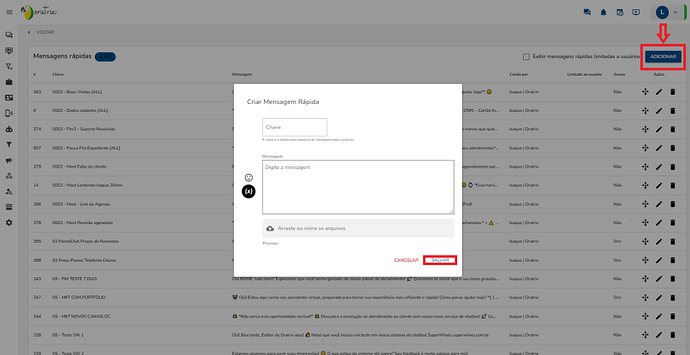 Após, clique em “Adicionar”, coloque uma chave e a mensagem.